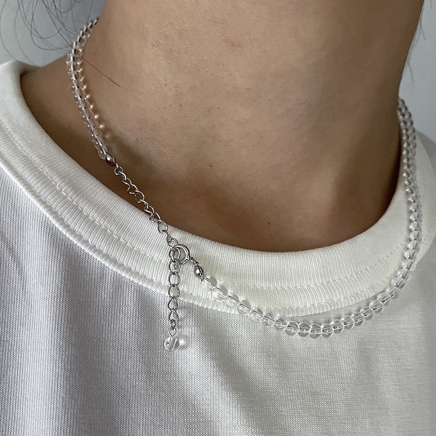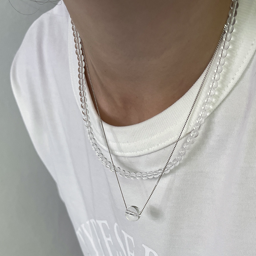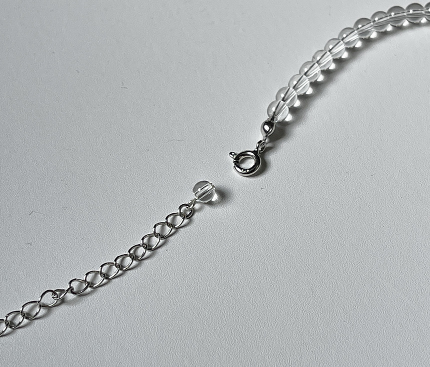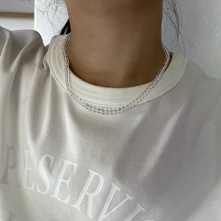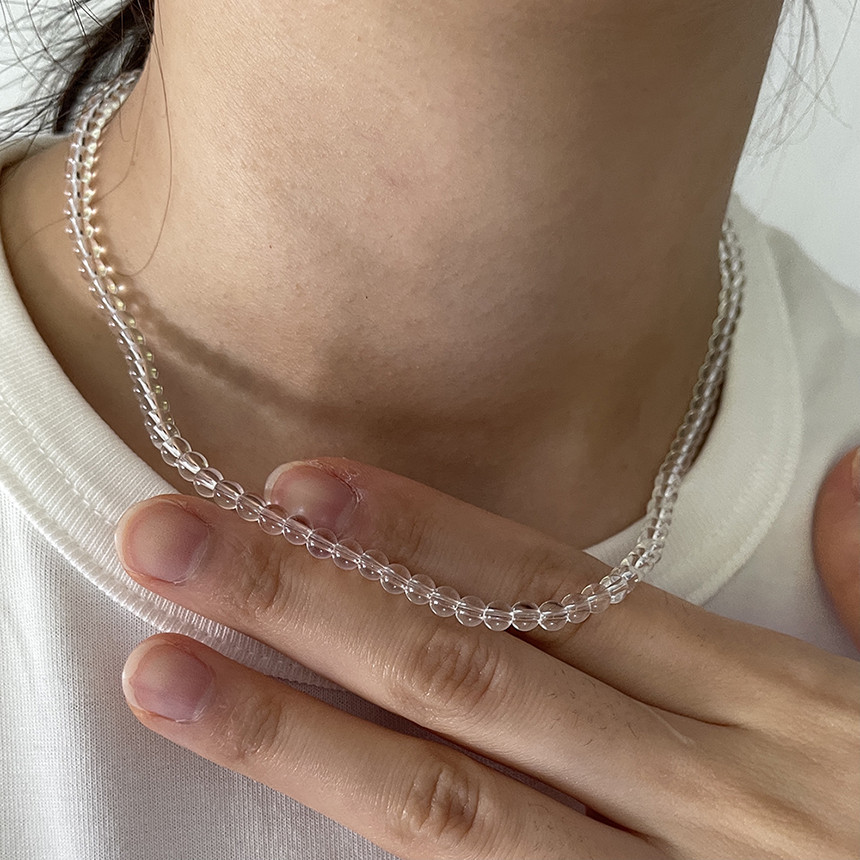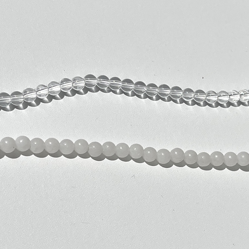 좋아하는 투명한 백수정과 화이트 컬러의 백옥으로 제작한 비즈 목걸이입니다.