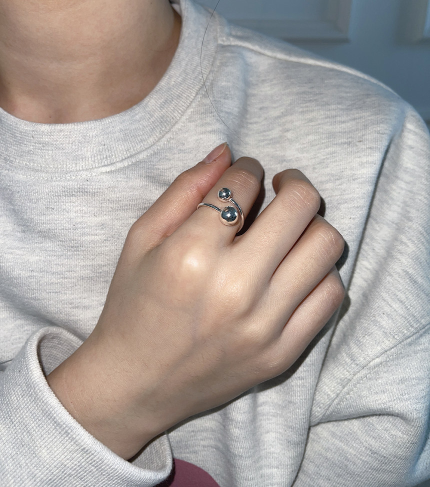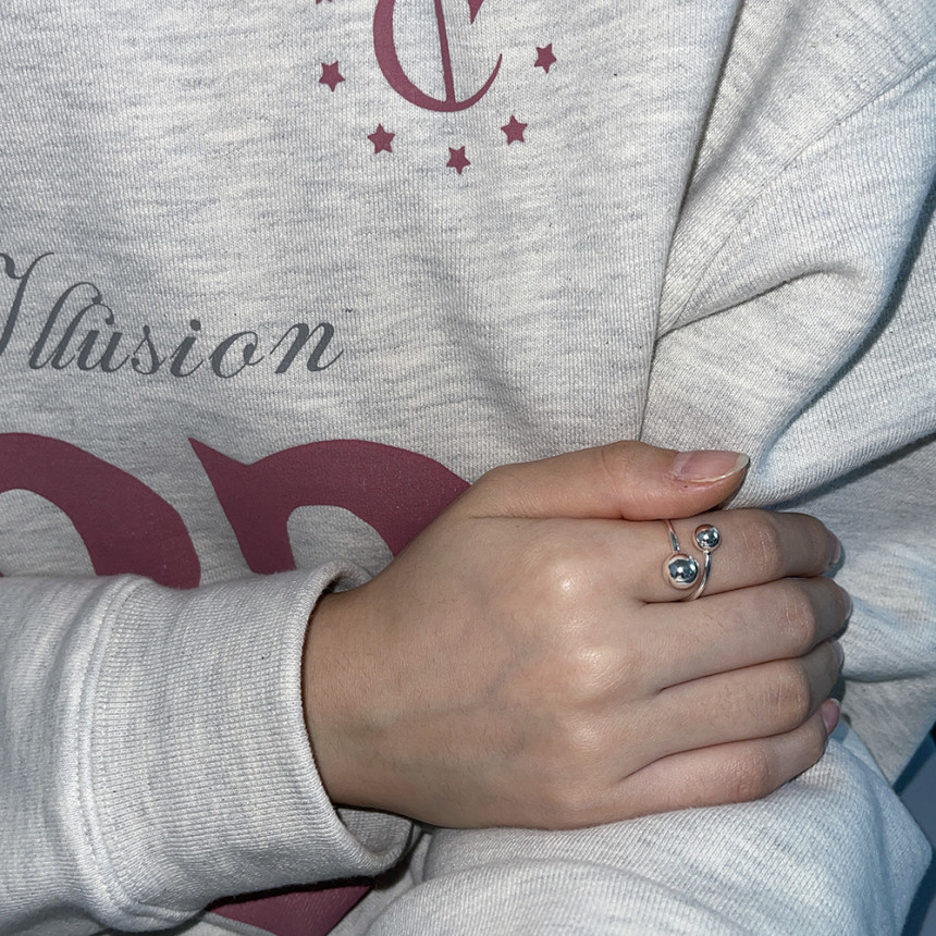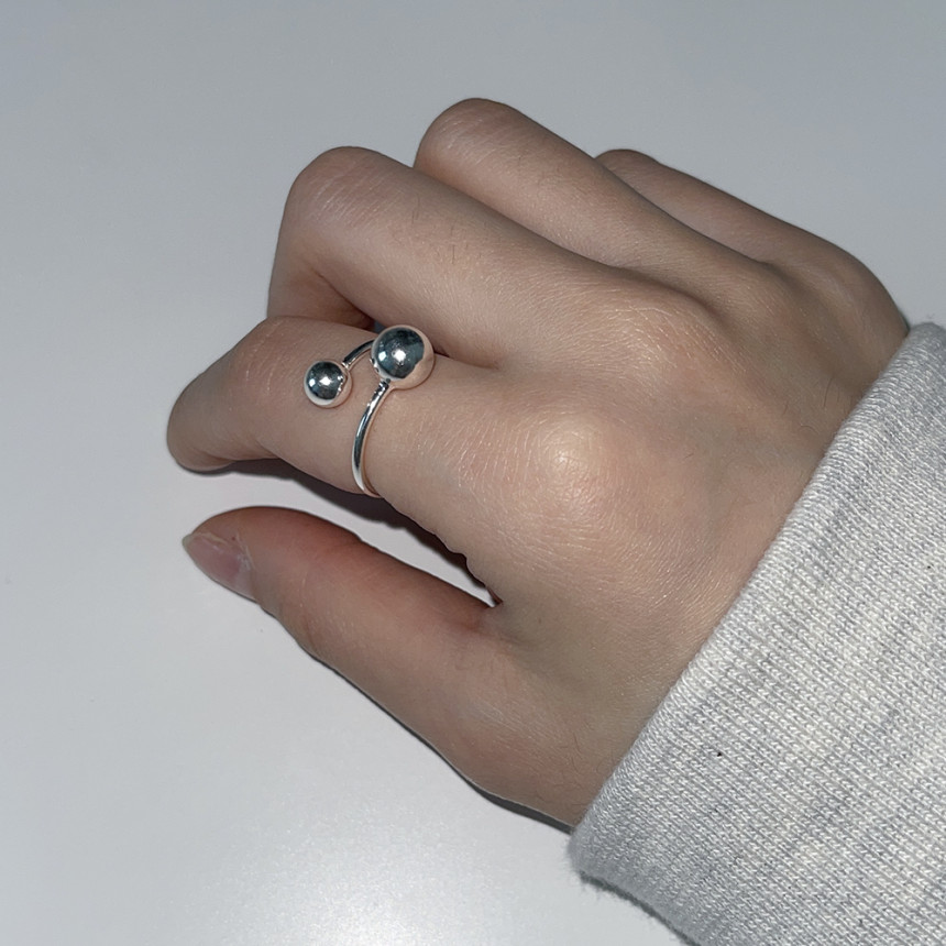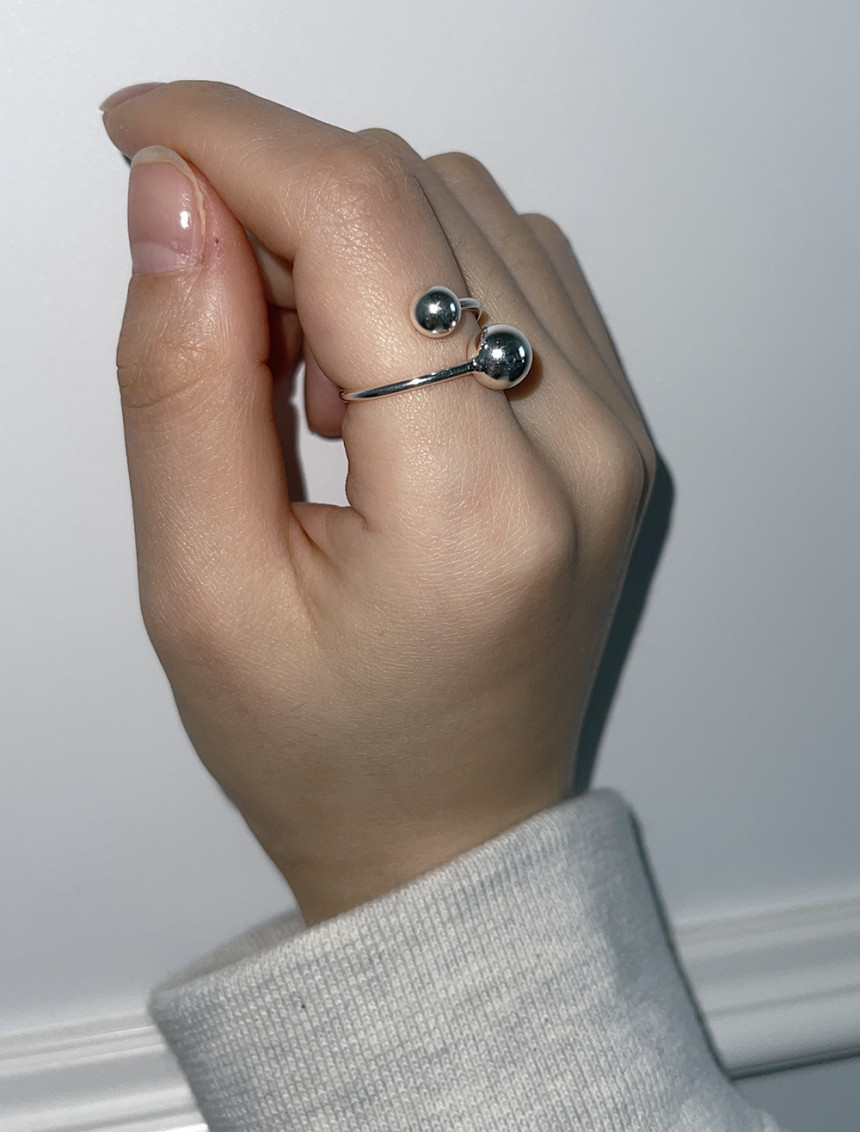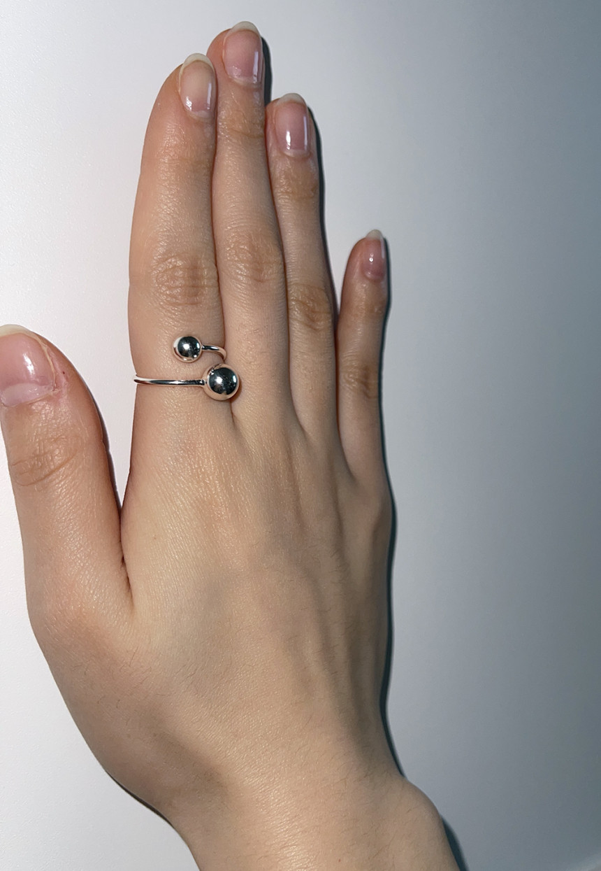 Silver Double Ball Open Ring