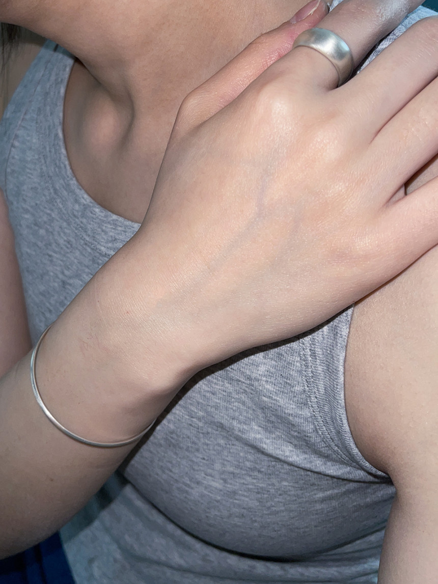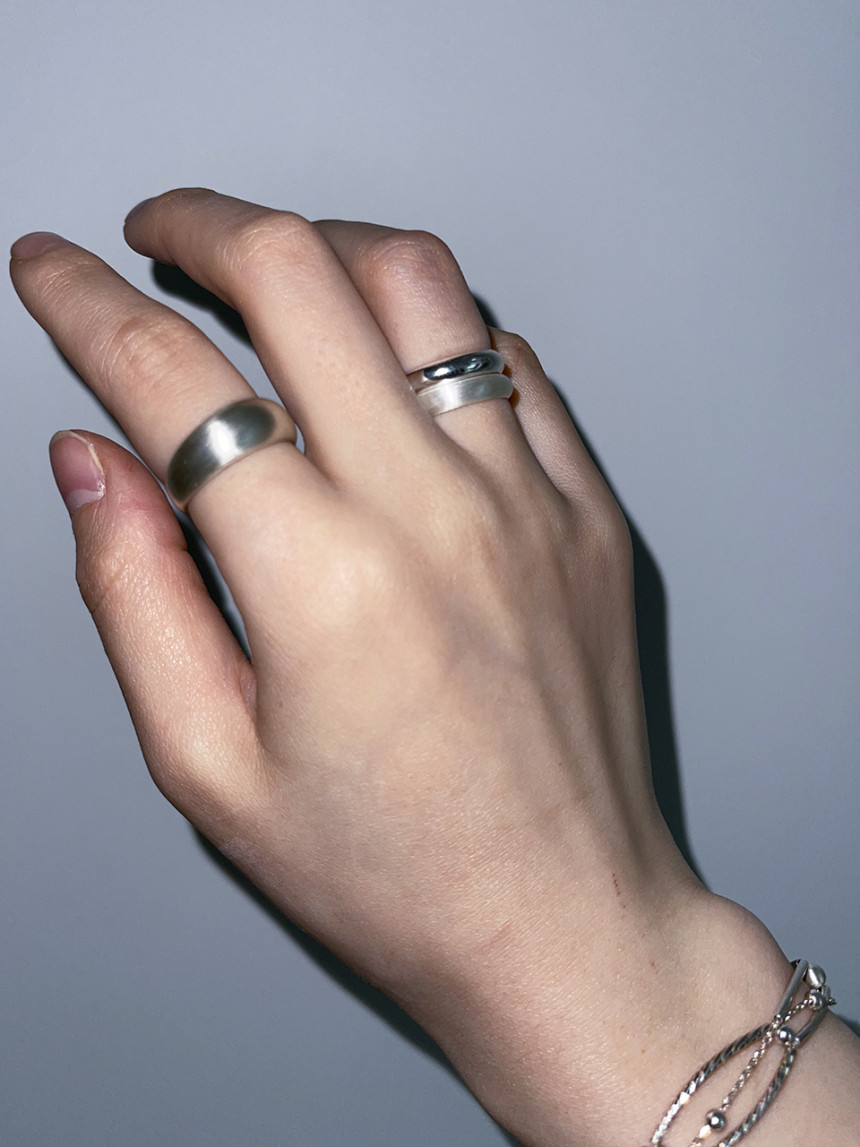 볼록한 내부를 채우지 않아 무겁지 않고, 마감 퀄리티가 높아 착용감이 좋은 반지입니다.