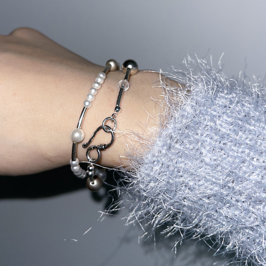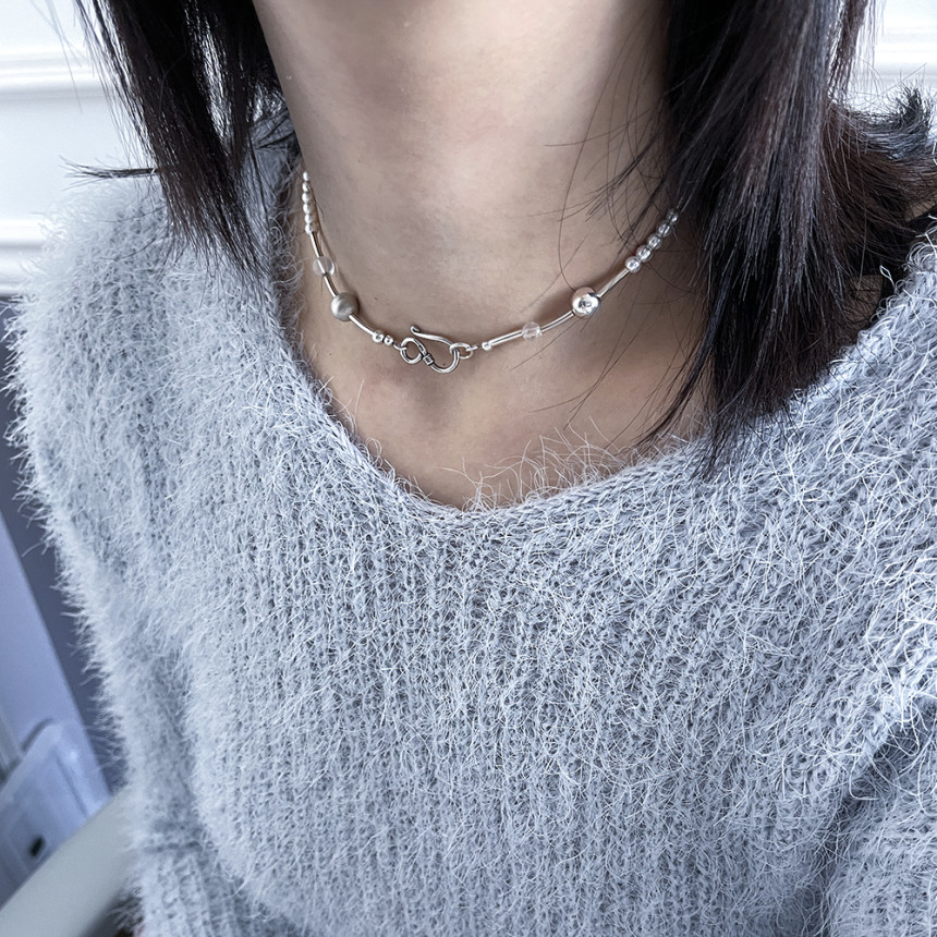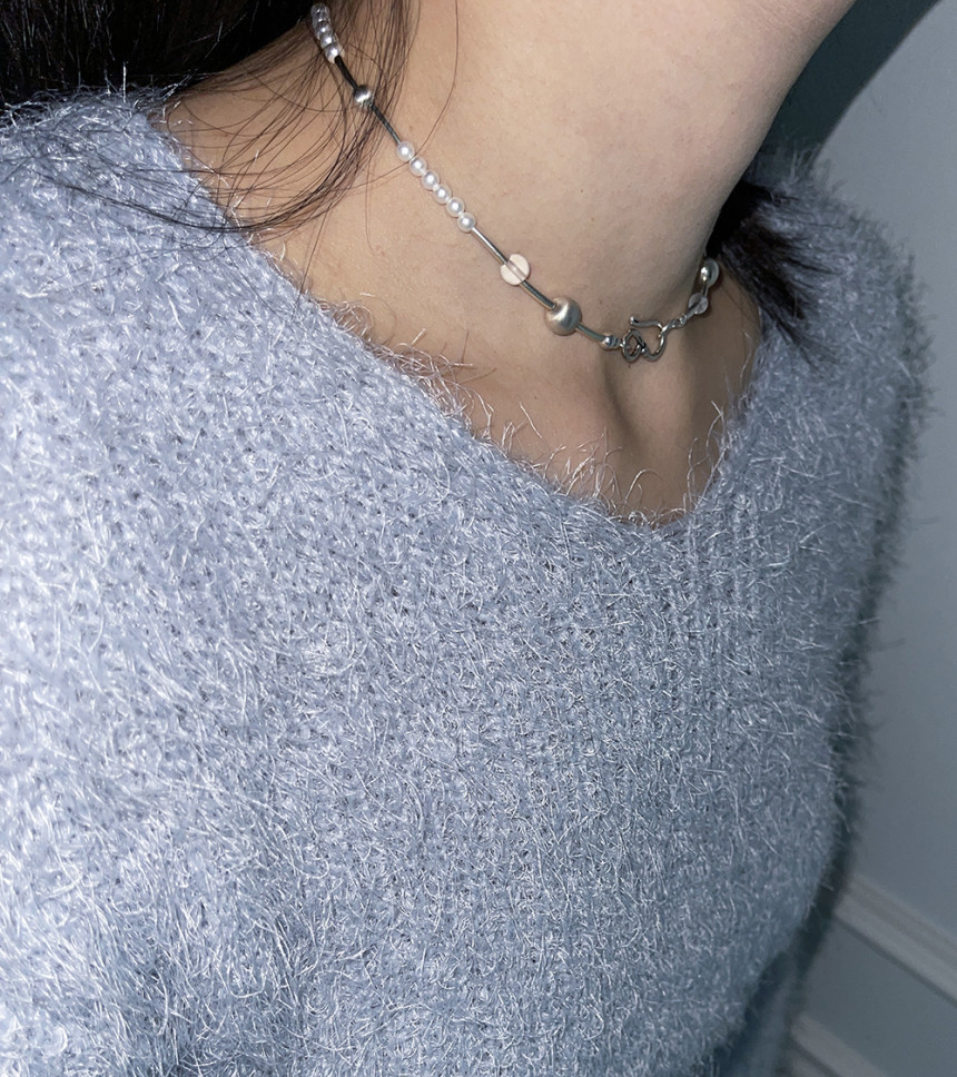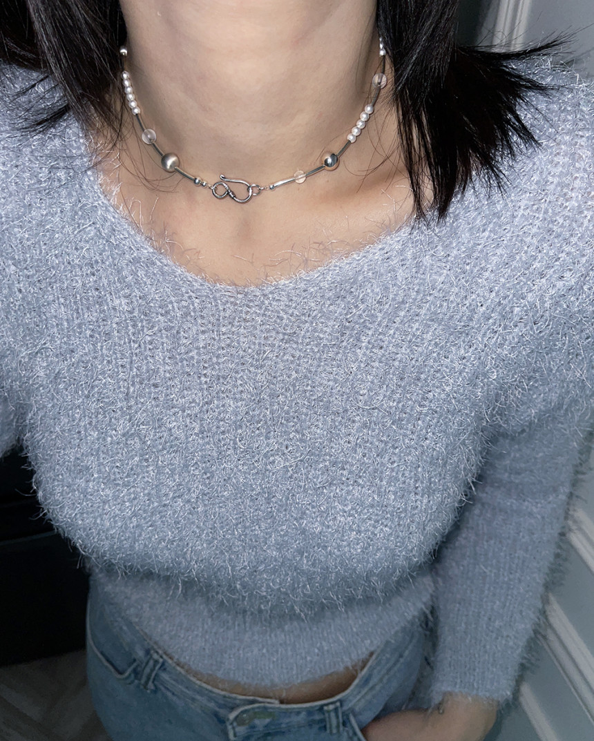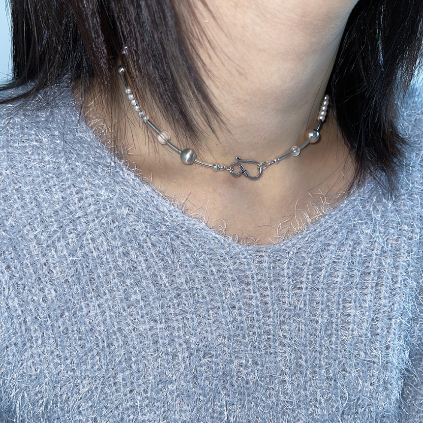 고리 부분의 위치를 변경하면 다른 디자인의 목걸이로 연출이 가능하고 두 번 감아 팔찌로도 할 수 있어