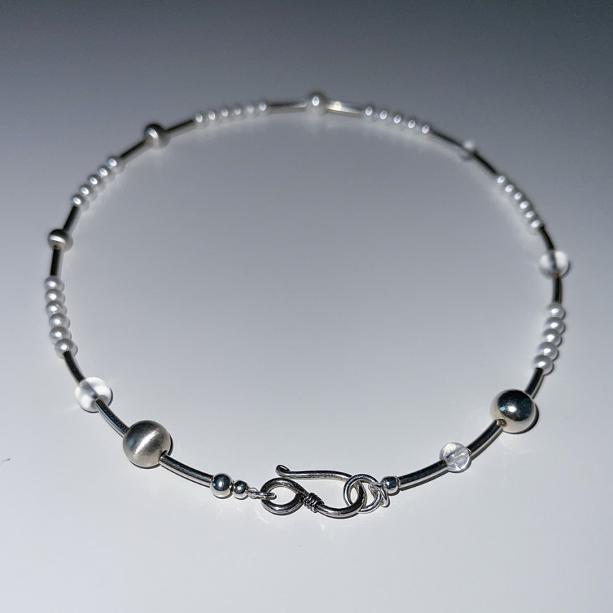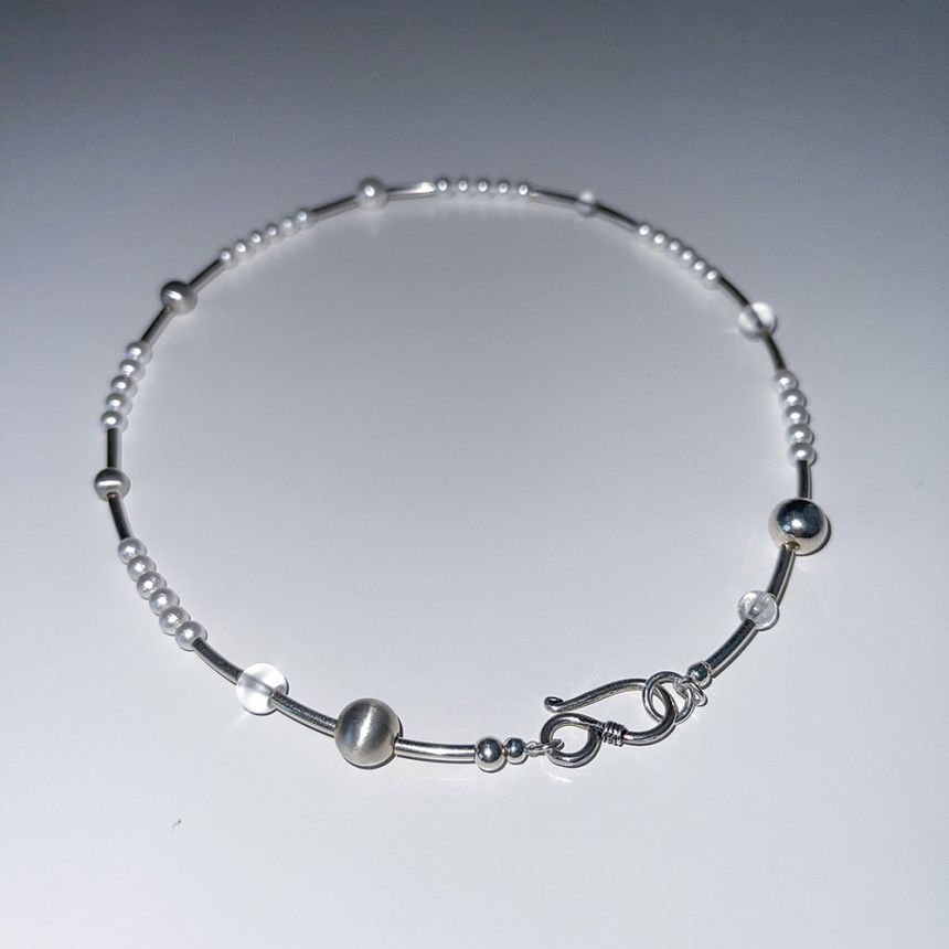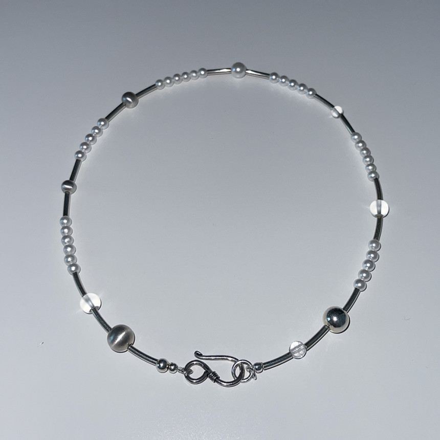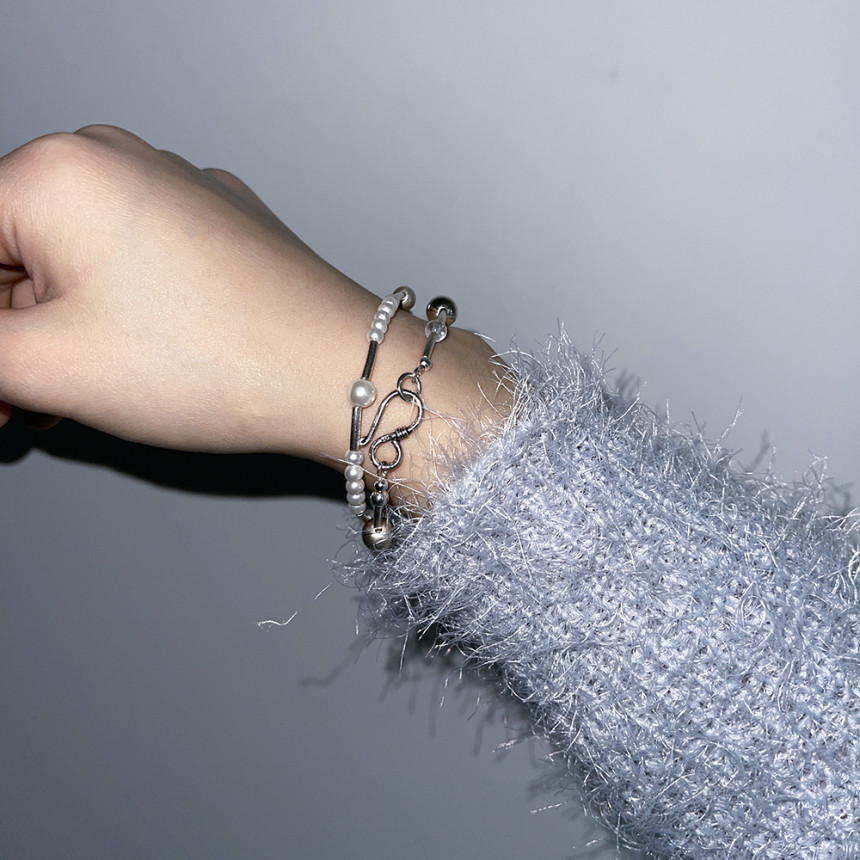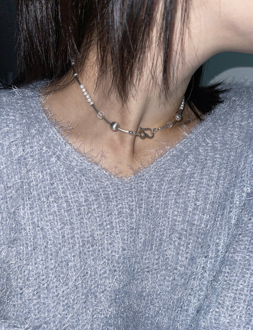 고리 부분의 위치를 변경하면 다른 디자인의 목걸이로 연출이 가능하고 두 번 감아 팔찌로도 할 수 있어