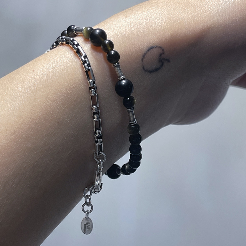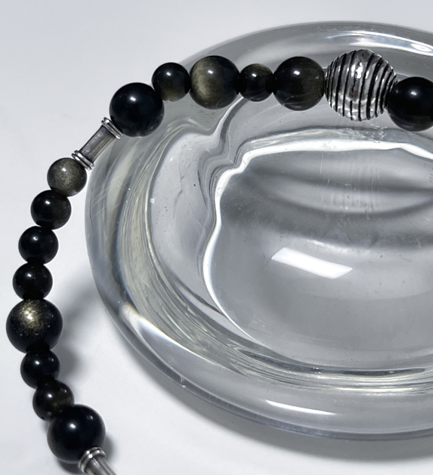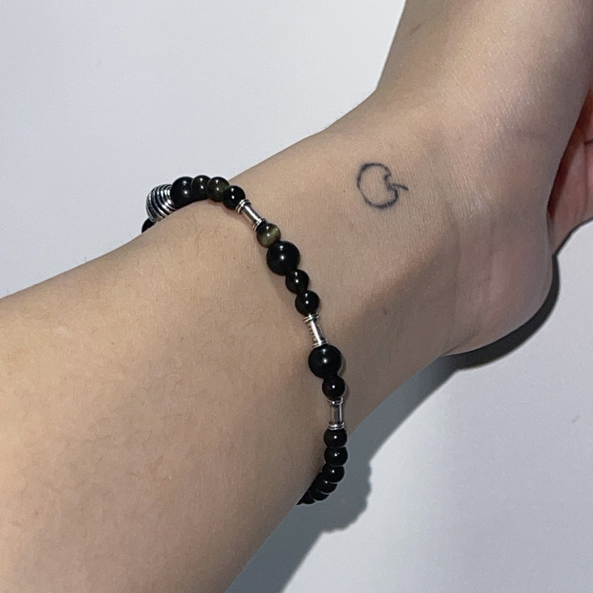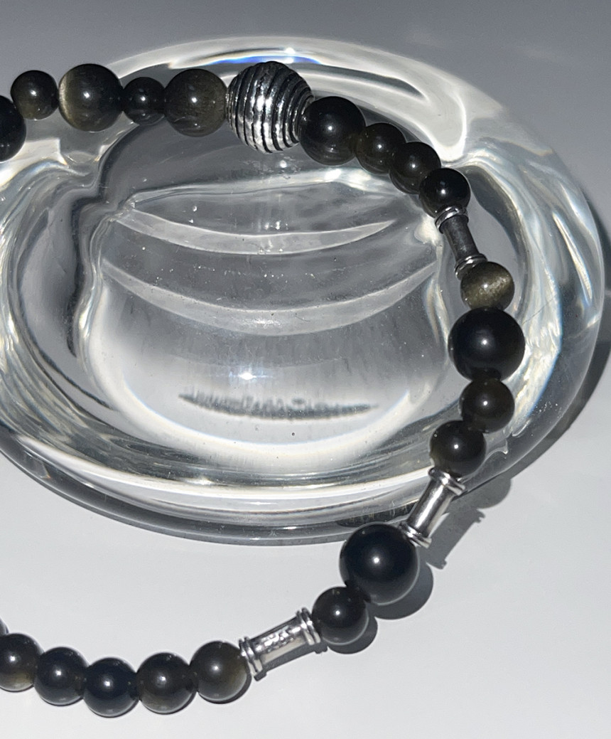 A급 흑요석(옵시디언)과 실버 론델을 사용하여 제작한 우레탄 팔찌입니다.