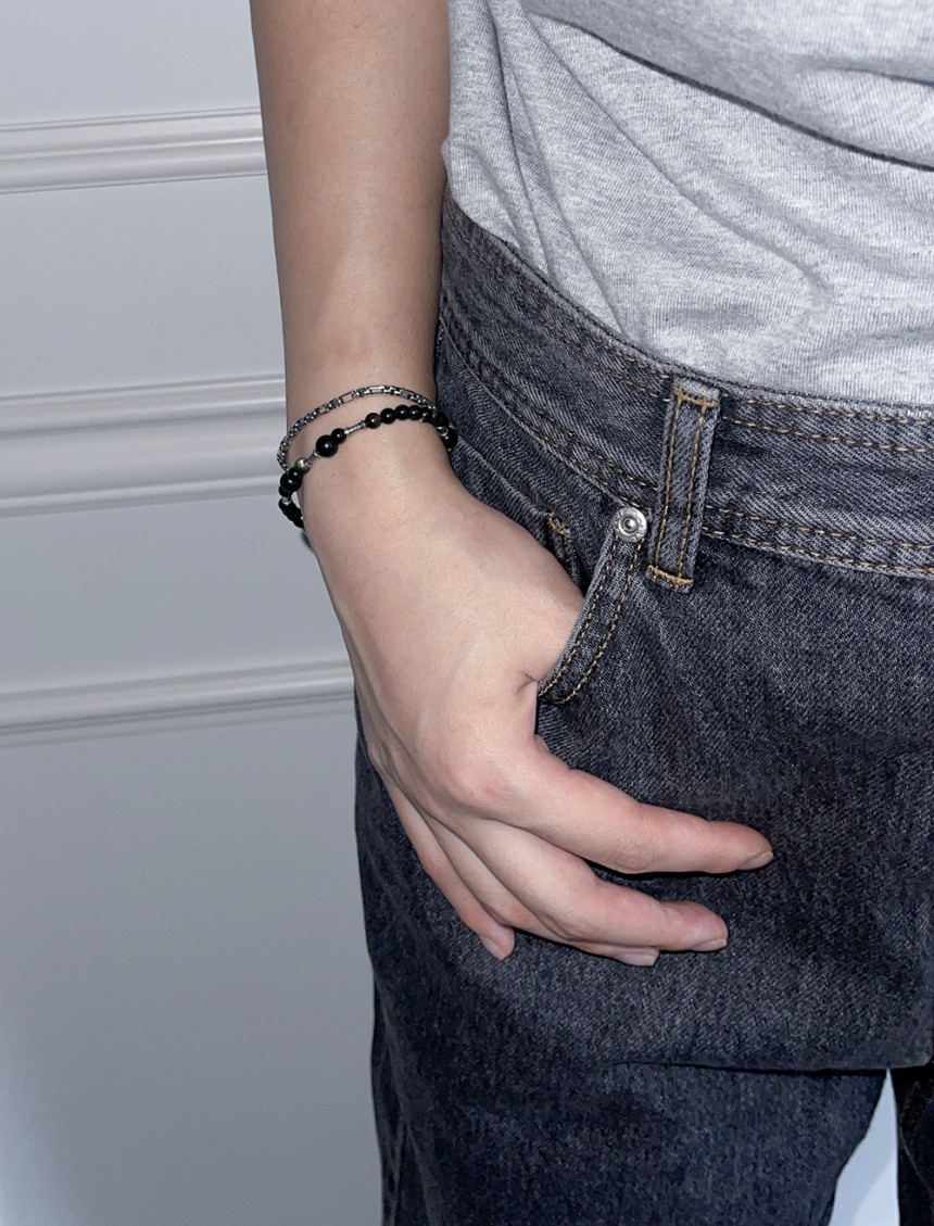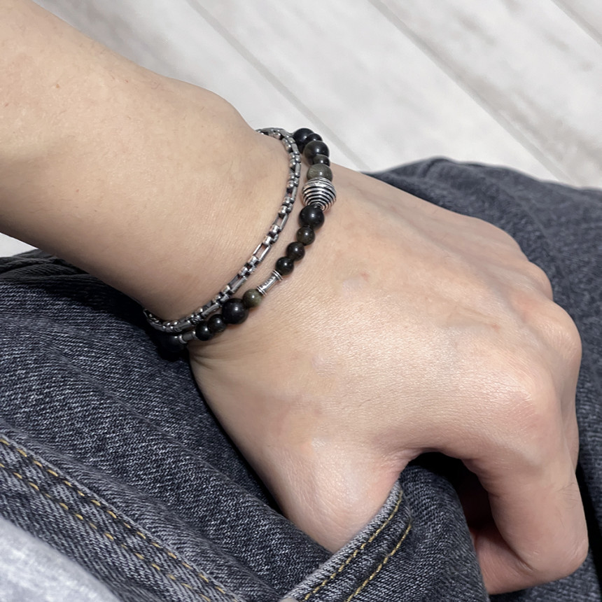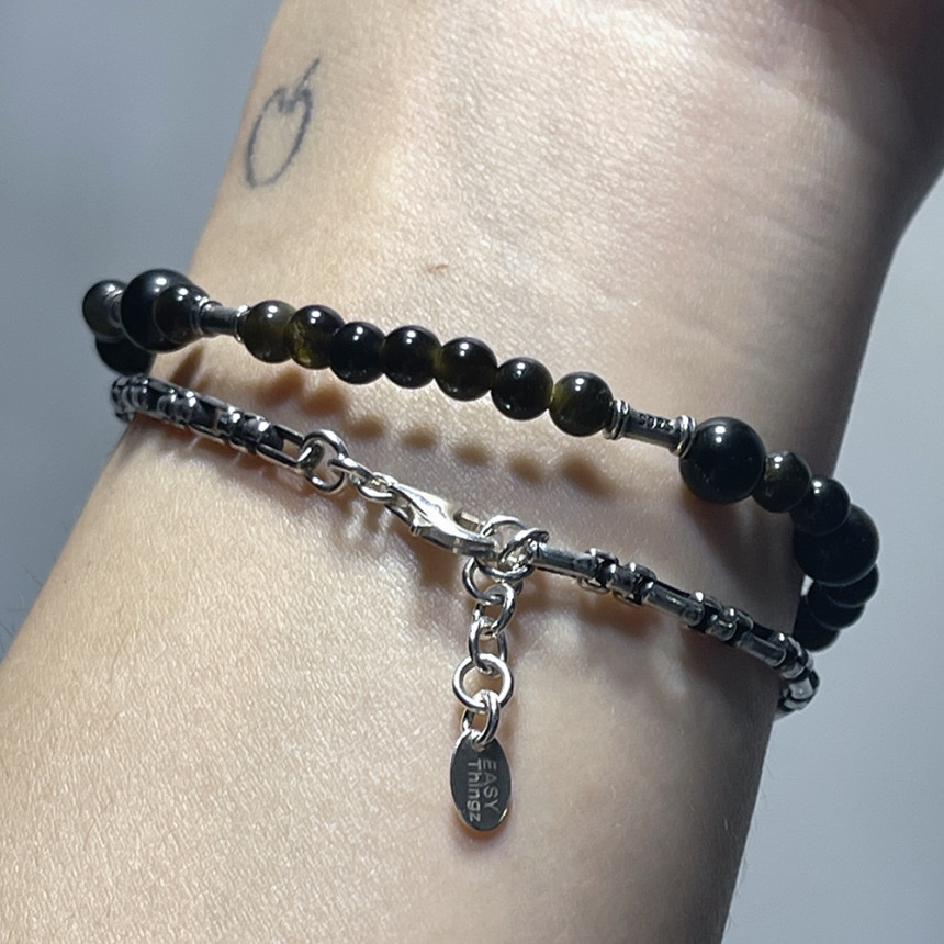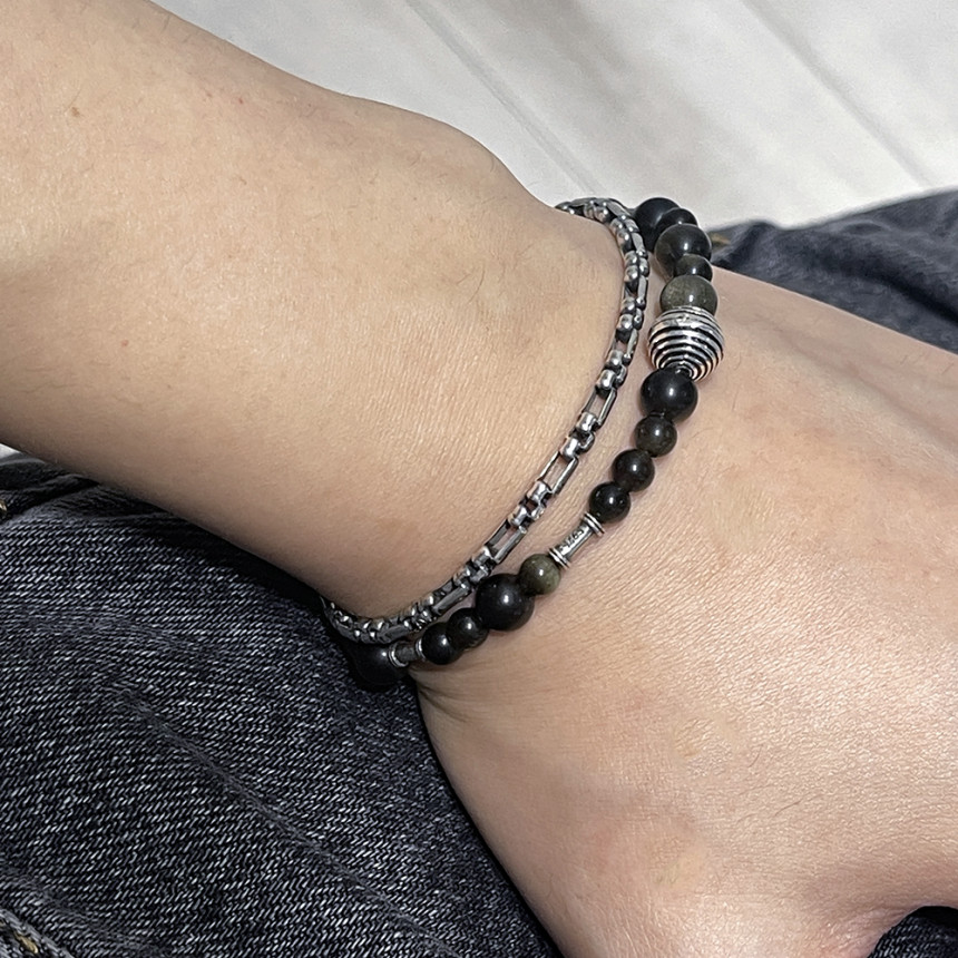 A급 흑요석(옵시디언)과 실버 론델을 사용하여 제작한 우레탄 팔찌입니다.