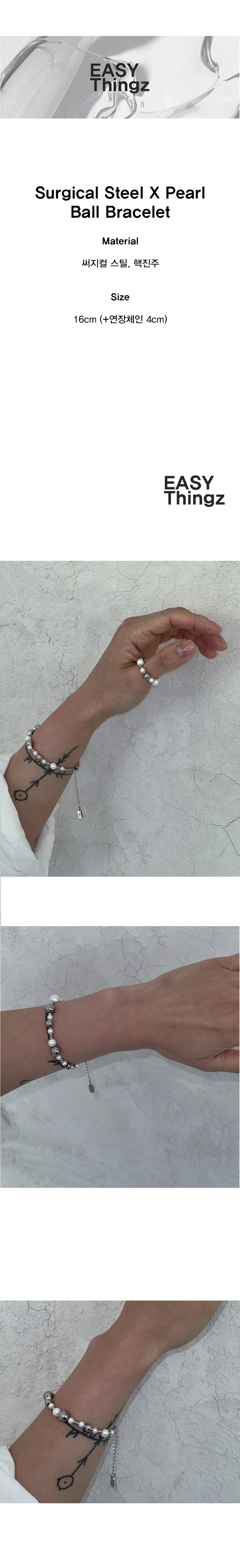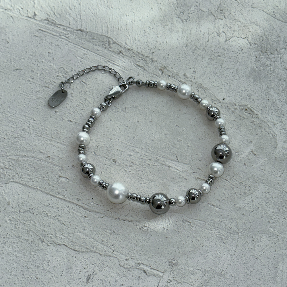 Surgical Steel X Pearl Ball Bracelet