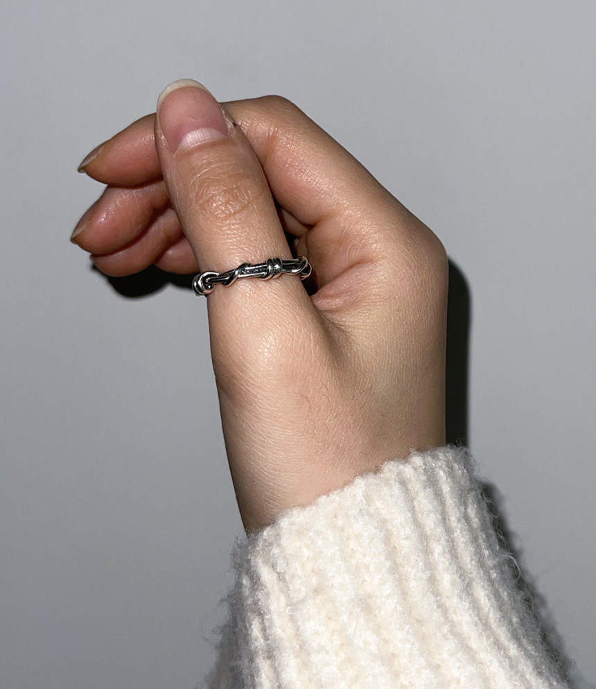 와이어를 감아 놓은 듯한 형상을 하고 있는 반지입니다.
